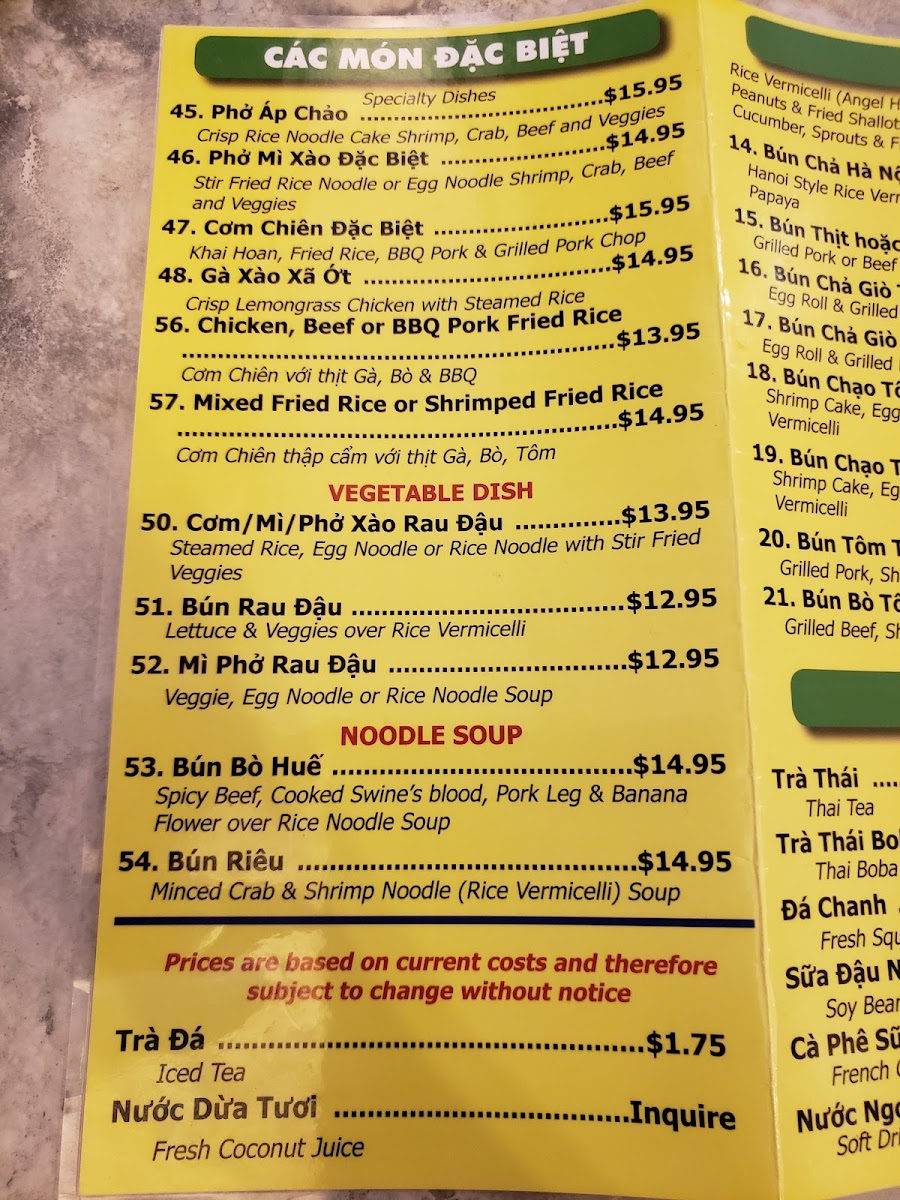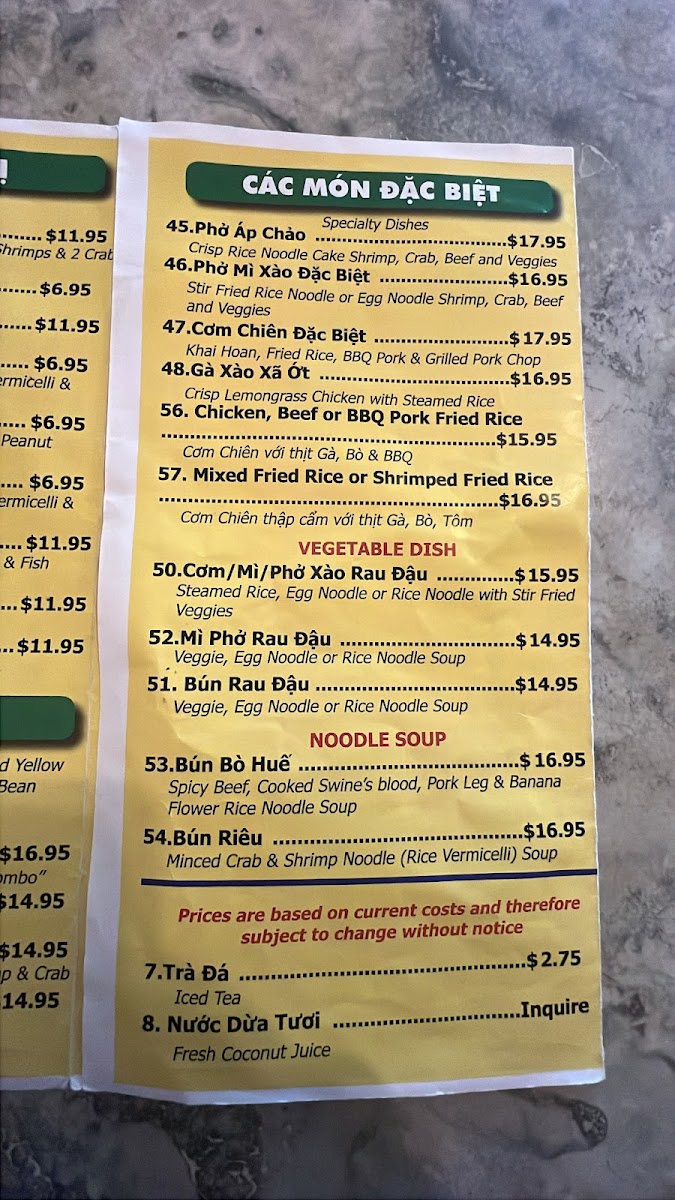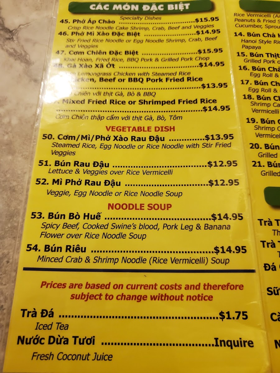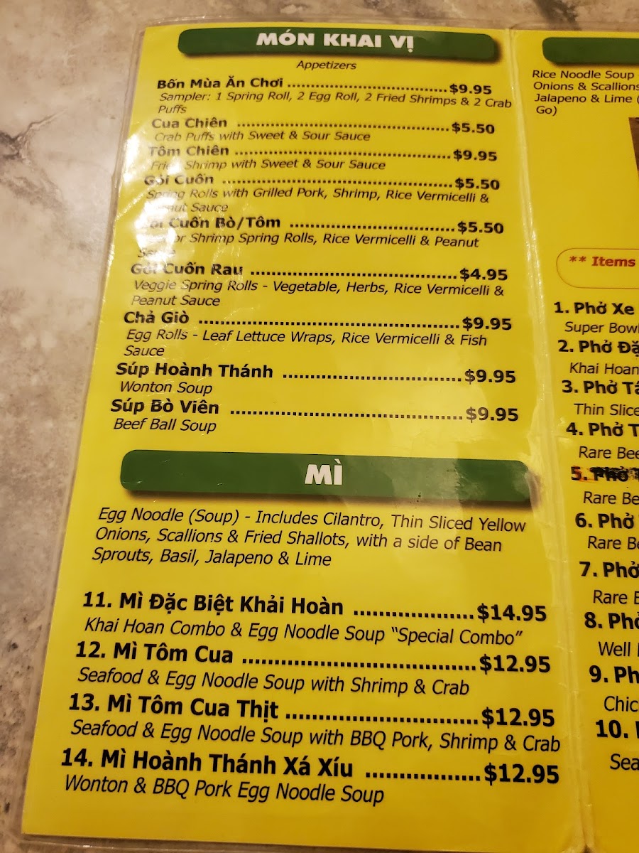 If you're in the mood for authentic Vietnamese flavors, the Khải Hoàn Restaurant Menu offers a delightful mix of traditional dishes with a modern twist. Nestled in Tempe, AZ, this cozy spot is the perfect place to experience the richness of Vietnamese cuisine. From the savory pho with tender cuts of beef to the crispy spring rolls filled with fresh ingredients, every dish is crafted with care. The menu also features a range of stir-fries, rice bowls, and aromatic soups that are sure to satisfy any craving. Whether you're a longtime fan of Vietnamese food or a newcomer looking to explore, there's something here for everyone. The combination of bold spices, fresh herbs, and vibrant flavors makes each meal at Khải Hoàn a memorable experience.